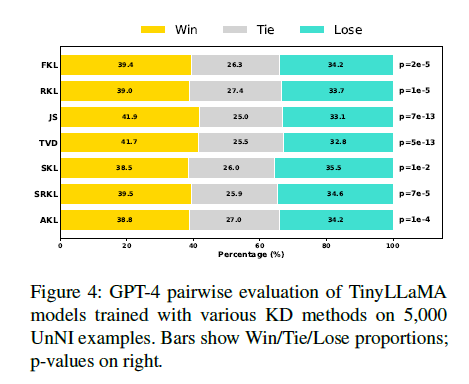 본 논문에서는 FKL(Forward KL)과 RKL(Reverse KL)이라는 두 대표적인 기법의 강점을 분석했습니다.